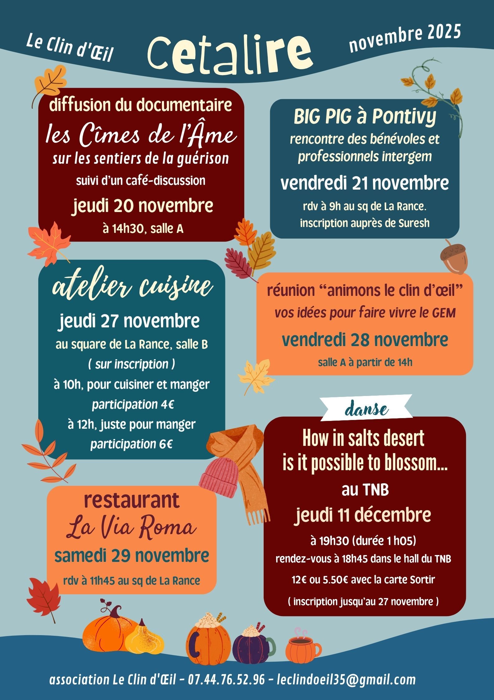 Cetalire, prochains évènements du mois