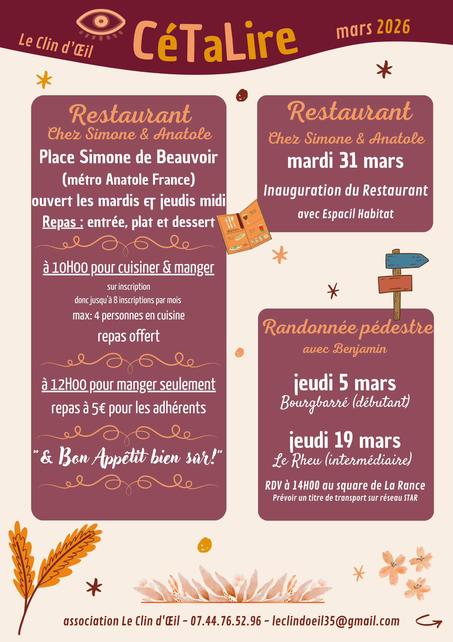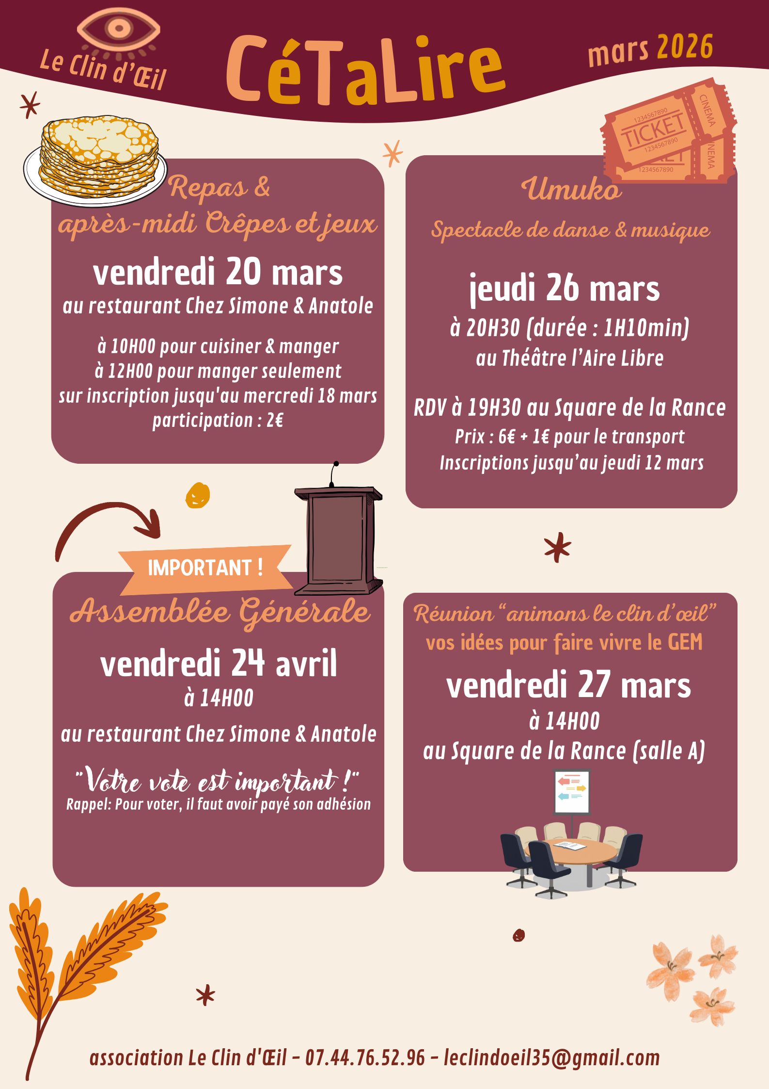 Cetalire, prochains évènements du mois